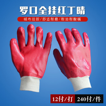 • 產(chǎn)品名稱: 羅口全掛紅丁晴手套